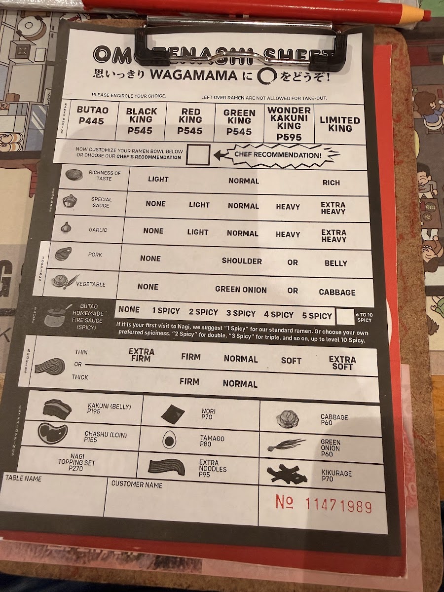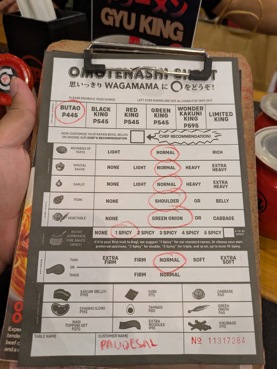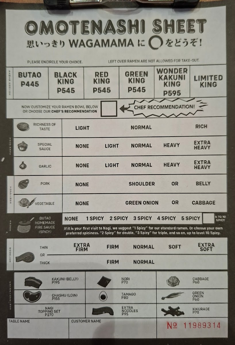 At Ramen Nagi - Robinsons Galleria, the menu presents a well-rounded snapshot of the brand’s signature ramen philosophy while remaining convenient and customizable for diners on the go. The Hot Nagi To-Go selection anchors the experience with crowd favorites like Green King, Black King, Red King, Butao King, and the indulgent Wonder Kakuni KingButao King, each reflecting Ramen Nagi’s mastery of bold broths and carefully balanced flavors. To complement the ramen, the beverage list keeps things simple and refreshing with Coke Zero, Sprite, Bottled WaterRoyal, while those seeking a relaxed pairing can choose from Sapporo Beer, San Miguel Light, Asahi Super DryKirin Ichiban Beer under the alcoholic beverages. Customization is another strong point, thanks to the Hot Nagi To-Go Extras such as Extra Noodles (Thick), Extra Noodles (Thin ), Extra Nori, Extra Tamago, and Nagi Toppings (All Toppings)Extra Noodles (Thin ), allowing diners to fine-tune each bowl to personal preference. Finally, the sides-including Chasu Rice, 3 Pcs, Curry Spring Roll3pcs, and Nagi Star Salad-add variety and balance, making the menu feel complete. Overall, the menu successfully summarizes what Ramen Nagi does best: distinctive ramen, flexible add-ons, and approachable accompaniments that come together as a satisfying conclusion to the dining experience.